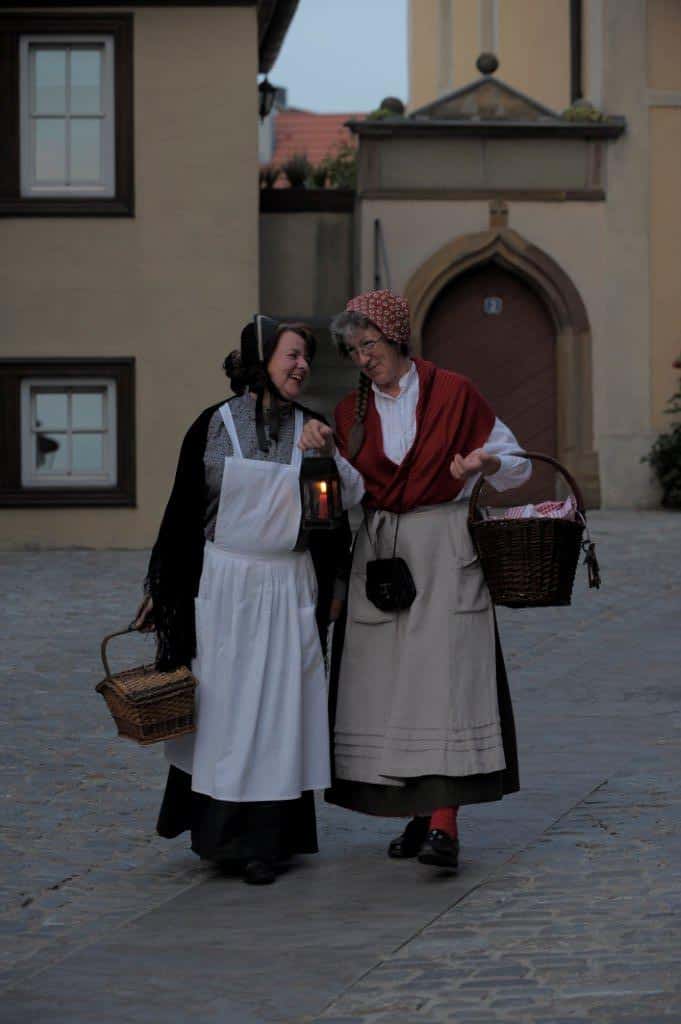 Die „Gerolzhöfer Weiberleut“ laden ein zu einer informativen und amüsanten Zeitreise vor nächtlicher Kulisse in Gerolzhofens Altstadt. Im Schein der Laterne trifft Marri, die Nachtwächtersfraa, auf Hanna, die städtische Hebamme. Sie erzählen vom Leben und Treiben der Vergangenheit. Beide Weiberleut´ plaudern und berichten von früher, sind aber keineswegs von gestern.