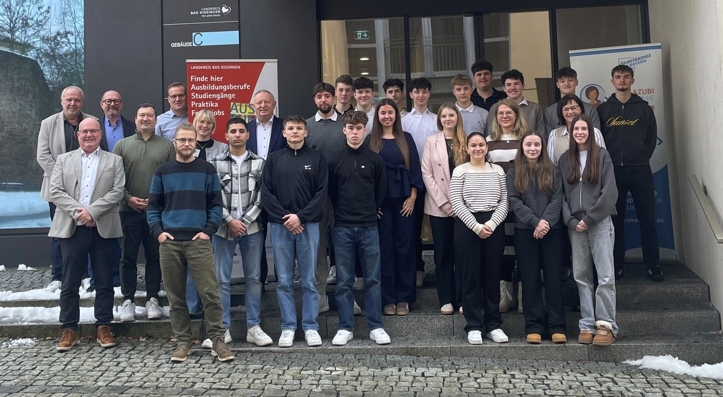 Landkreis Bad Kissingen: Zum Kommunalwahljahr 2026 startete die BDS Azubiakademie im Januar 2026 offiziell mit 36 Auszubildenden aus sechs Firmen. Zur Begrüßung ließ es sich Landrat Bold nicht nehmen, trotz seines Geburtstags, die Azubis im Sitzungssaal des Landratsamtes zu begrüßen. Es sei überaus wertvoll, mit anderen Auszubildenden – auch aus unterschiedlichen Unternehmen – zusammenzukommen, so Bold. „Diese Begegnungen bereichern nicht nur Ihren Arbeitsalltag. Sie lernen sich kennen, merken, dass ihre Kolleginnen und Kollegen ähnliche Fragen beschäftigen, und genau das lässt Sie spüren, dass Sie mit ihren Themen nicht allein sind“, erklärte er. Zugleich unterstrich er dieBedeutung von Netzwerken und gemeinschaftlichem Handeln. Sein Rat an die Auszubildenden: „Gehen Sie offen in jede neue Situation und halten Sie den Kontakt zueinander.“ Seinen besonderen Dank richtete er an den Bund der Selbständigen sowie an die beteiligten Unternehmen, die es mit der BDS-Azubiakademie ermöglichen, „über den Tellerrand hinauszuschauen und den eigenen Horizont zu erweitern.“ Die Teilnehmenden bedankten sich anschließend beim Landrat mit einem musikalischen Geburtstagsständchen.