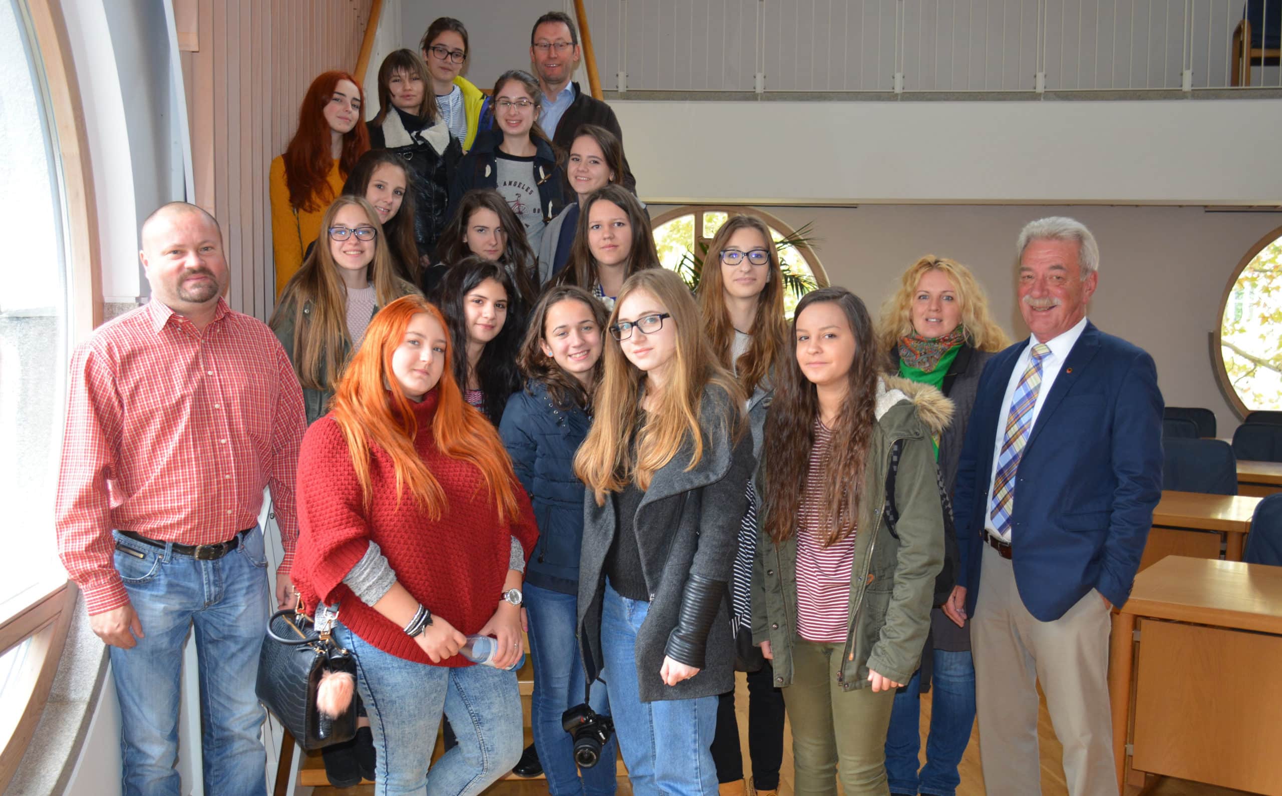 Landkreis Schweinfurt: Der stellvertretende Landrat Peter Seifert hat Gastschüler aus Rumänien im Landratsamt empfangen. Die Schülerinnen waren mit ihren beiden Lehrern im Rahmen eines Schüleraustausches des Celtis-Gymnasiums in Schweinfurt.