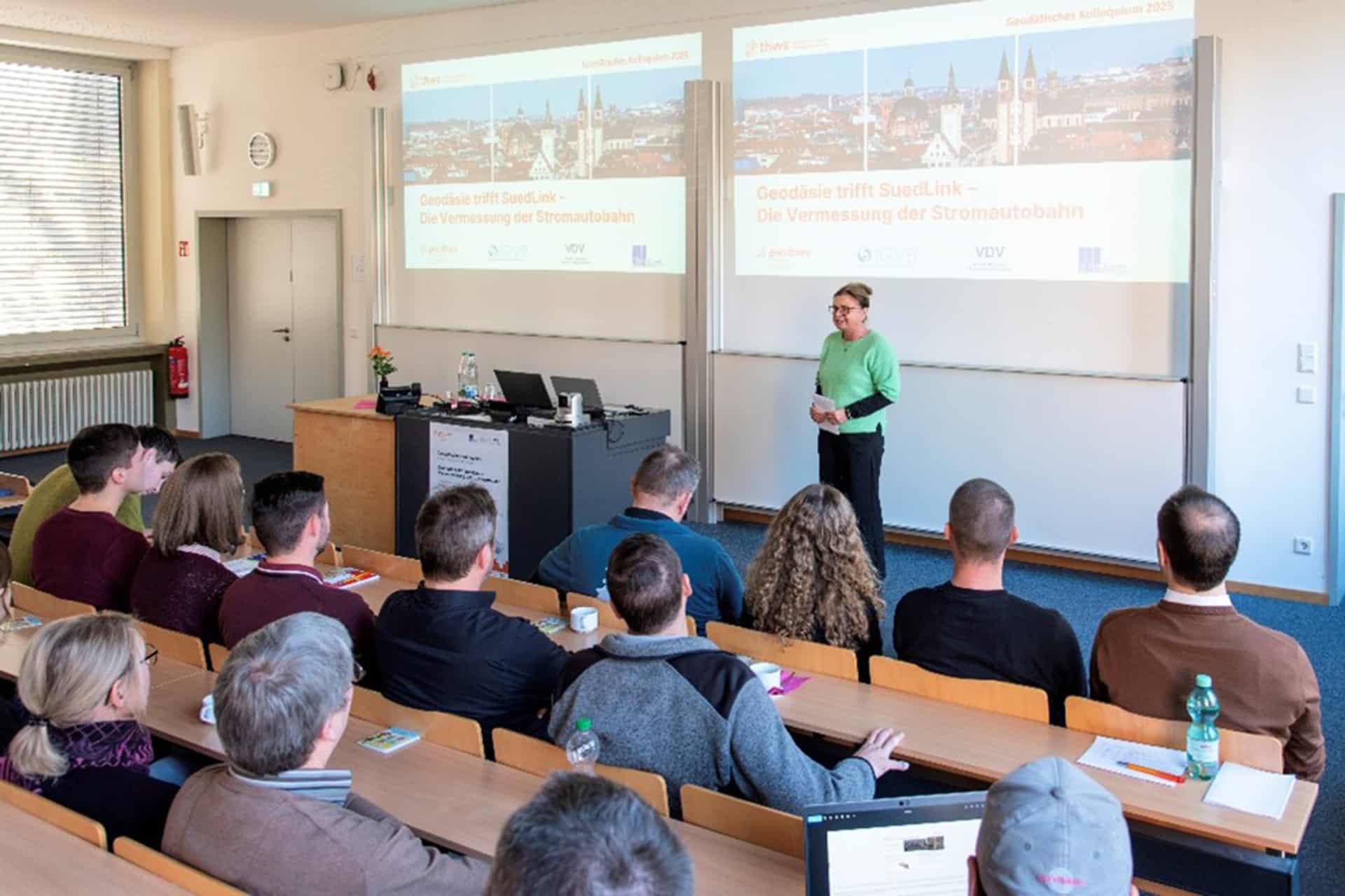 SuedLink aus erster Hand beim Geodätischen Kolloquium 2025 der THWS-Fakultät Kunststofftechnik und Vermessung mit Prämierung hervorragender Studienleistungen Prof. Dr.-Ing. Daniela Wenzel führt rund 70 Teilnehmende durch die Veranstaltung (Foto: THWS/Rainer Schäffner)
