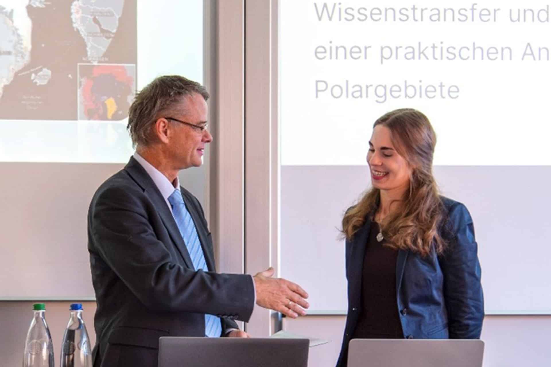 Integraler Bestandteil des Geodätischen Kolloquiums ist traditionell die Prämierung herausragender Studienleistungen. Die Bayerische Vermessungsverwaltung prämierte die beiden THWS-Absolventinnen Lisa Flachsenberger und Theresa Schreglmann. Die Arbeit von Lisa Flachsenberger trägt den Titel „Geodaten an Schulen – Wie kann die Integration von Geodaten an bayerischen Gymnasien verbessert werden?“. Theresa Schreglmann forschte zur „Analyse von wissenschaftlichen Geovisualisierungen zu Klimaveränderung für den Wissenstransfer und Umsetzung einer praktischen Anwendung für die Polargebiete“.