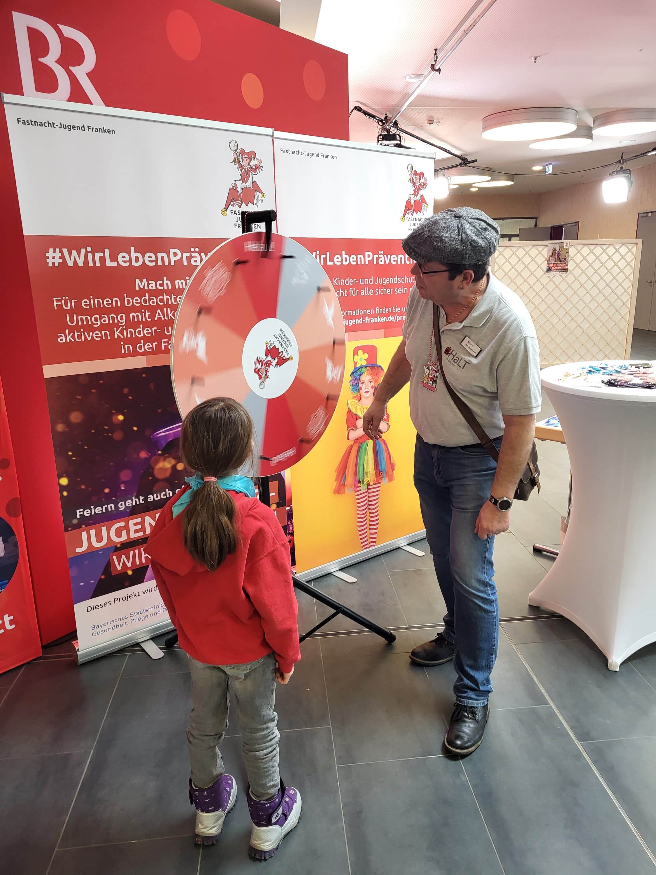 In Kooperation mit dem HaLT-Standort Stadt und Landkreis Schweinfurt machte sie daher im Vorfeld der BR-Aufzeichnung „Fastnacht in Franken – Jung und Närrisch“ in den Mainfrankensälen Veitshöchheim an einem Infostand auf die Problematik aufmerksam.