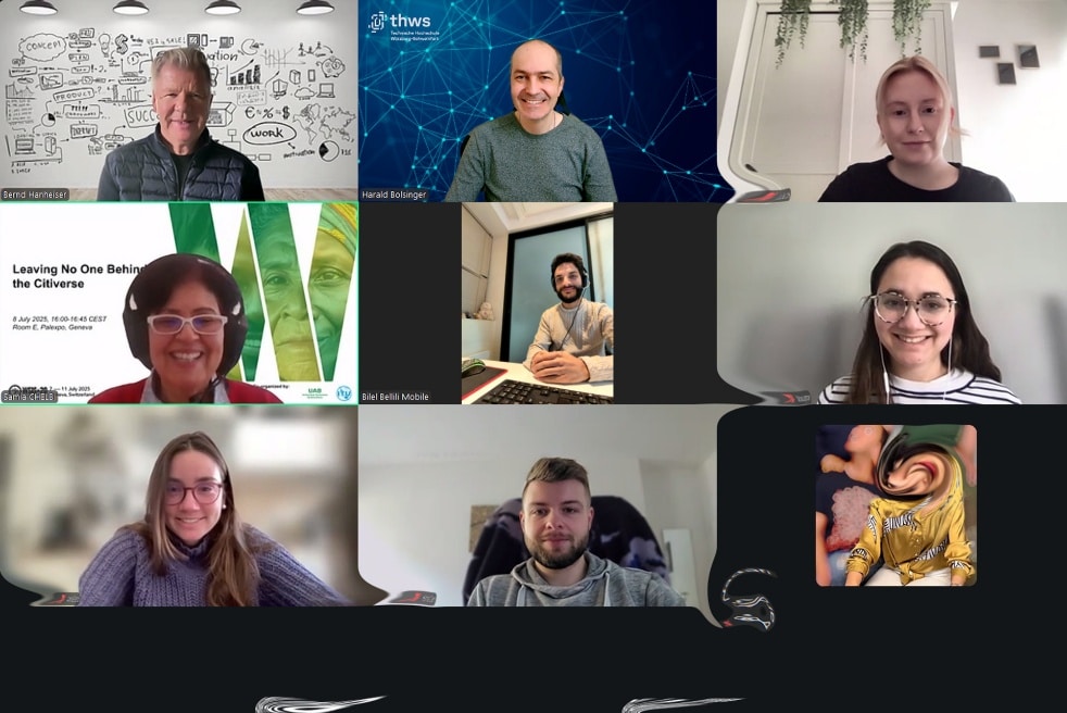 Während des virtuellen Treffens bekamen die Studierenden einen strukturierten Überblick über den gesamten Lebenszyklus von TalentVerse – von der Ursprungsidee über die aktuelle Pilotierung bis zu künftigen Skalierungsszenarien. Dabei erläuterte Samia Chelbi zentrale Elemente ihres digitalen Geschäftsmodells, darunter die Positionierung als internationale EdTech- und Talentplattform sowie die Einbettung in Förder- und Partnerstrukturen auf mehreren Kontinenten. „Die Live-Demonstration der virtuellen Umgebung zeigte anschaulich, wie TalentVerse Bildungs-, Trainings- und Jobmatching-Prozesse in einer immersiven, spieleähnlichen Plattform zusammenführt“, so Prof. Dr. Bolsinger. Immersiv bedeutet das Eintauchen in eine Umgebung oder Erfahrung.