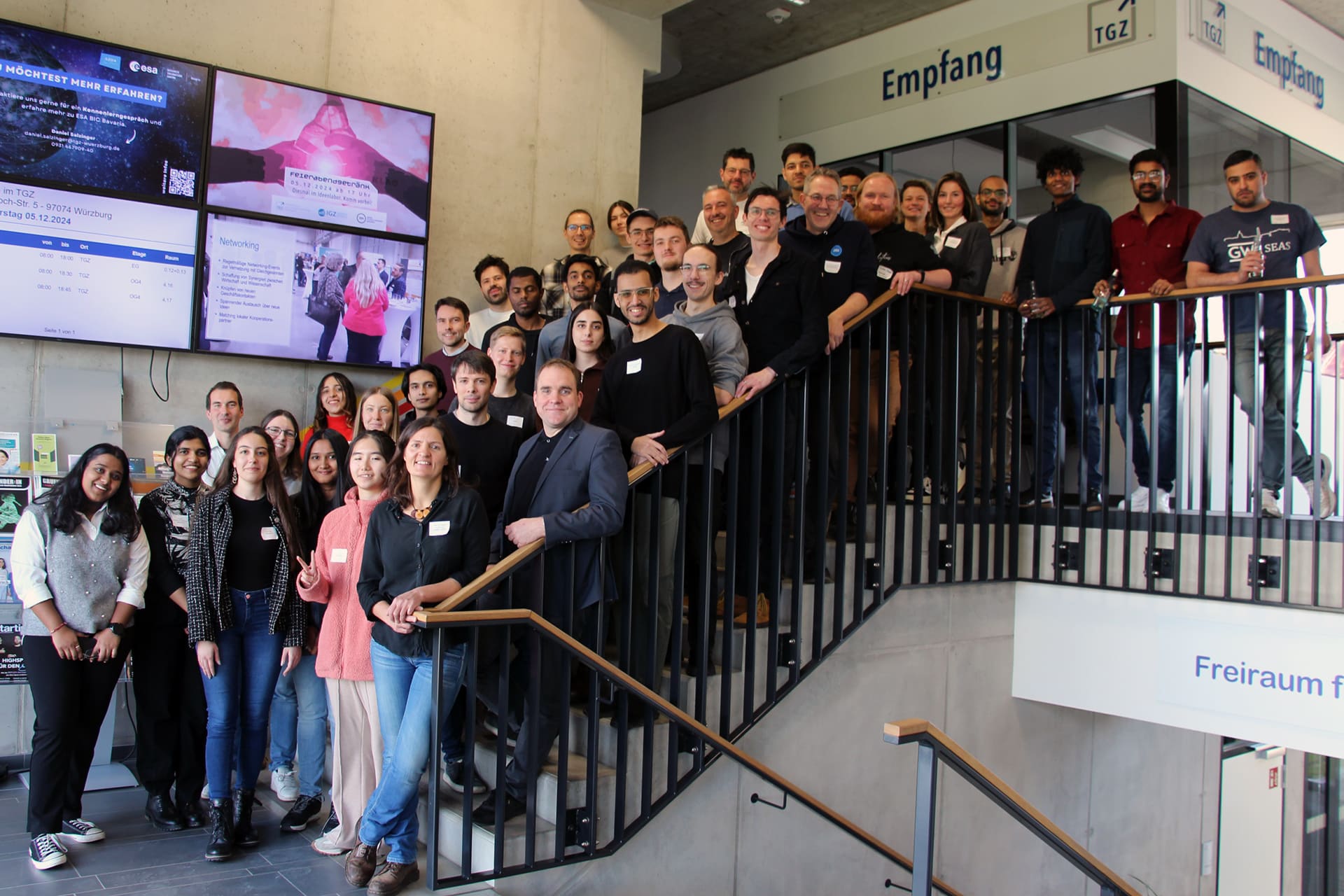 Titelbild: THWS-Masterstudierende des Masterstudiengangs Artificial Intelligence mit Prof. Dr. Magda Gregorová (vorne), CAIRO, gemeinsam mit Mitarbeitenden des TGZ, IGZ und ZDI während des Student-Company Collaboration Day (Foto: THWS/Anne Speda)