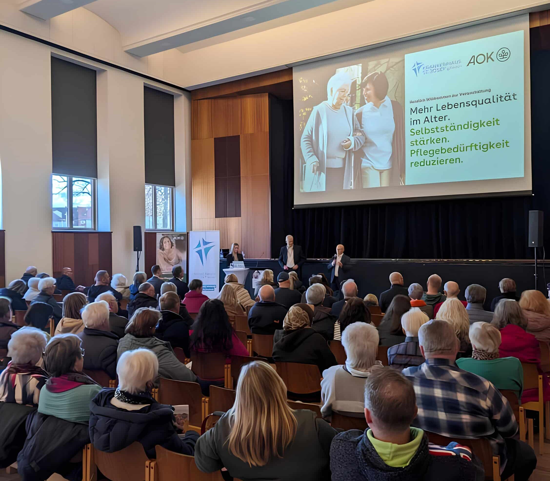 Schweinfurt: Großer Zuspruch für eine Informationsveranstaltung zum Thema gesundes Älterwerden: Am Dienstag, 24. Februar 2026, luden die AOK Schweinfurt und das Krankenhaus St. Josef zur kostenfreien Veranstaltung „Mehr Lebensqualität im Alter – Selbstständigkeit stärken. Pflegebedürftigkeit reduzieren.“ in die Stadthalle Schweinfurt ein. Über 90 Besucherinnen und Besucher nutzten die Gelegenheit, sich über Prävention, Pflege und Unterstützungsangebote zu informieren.