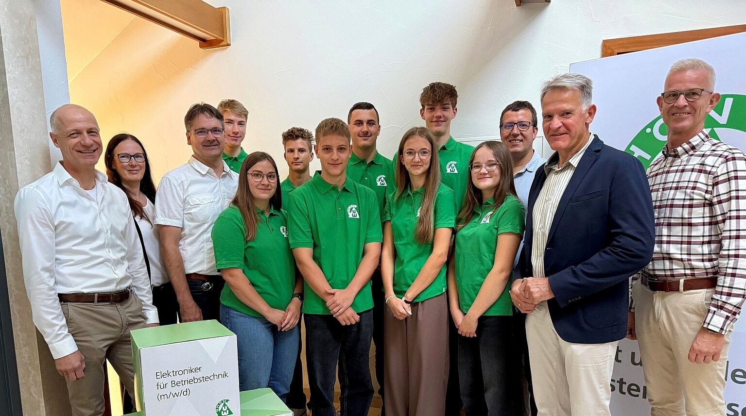 Titelbild: Ausbildungsstart bei der Überlandwerk Rhön GmbH. v.l: Roland Göpfert (Geschäftsführer), Stefanie Weber (Ausbildungsleiterin), Peter Omert (gewerbl. Ausbildungsmeister), Valentin Dietz (Fladungen), Laura Seidenzahl (Sondheim/Grabfeld), Timo Pfister (Sandberg), Leo Langenbrunner (Mellrichstadt), Benedikt Weisensee (Kleinbardorf), Kim Kleinherz (Schönau), Louis Klüber (Mellrichstadt), Paula Rittweger (Saal), Andreas Hartung (kaufm. Ausbildungsleiter), Michael Gottwald (Bayerische Rhöngas), Joachim Schärtl (Geschäftsführer); Foto: Susan Damm, Überlandwerk Rhön