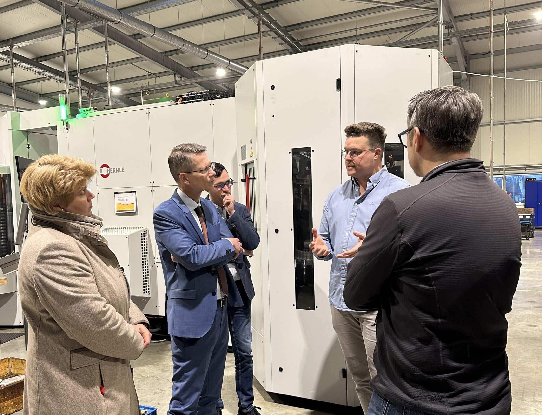 Zu Beginn des Besuchs erhielten die Gäste einen Überblick über die Unternehmensentwicklung, zentrale Kennzahlen sowie die strategischen Hintergründe des Zusammenschlusses. Im Anschluss folgten Rundgänge durch die Produktionshallen beider Betriebe. Dabei standen insbesondere automatisierte Fertigungsprozesse, Robotik, moderne Lasertechnologien sowie Aspekte der Digitalisierung und Qualitätssicherung im Fokus.