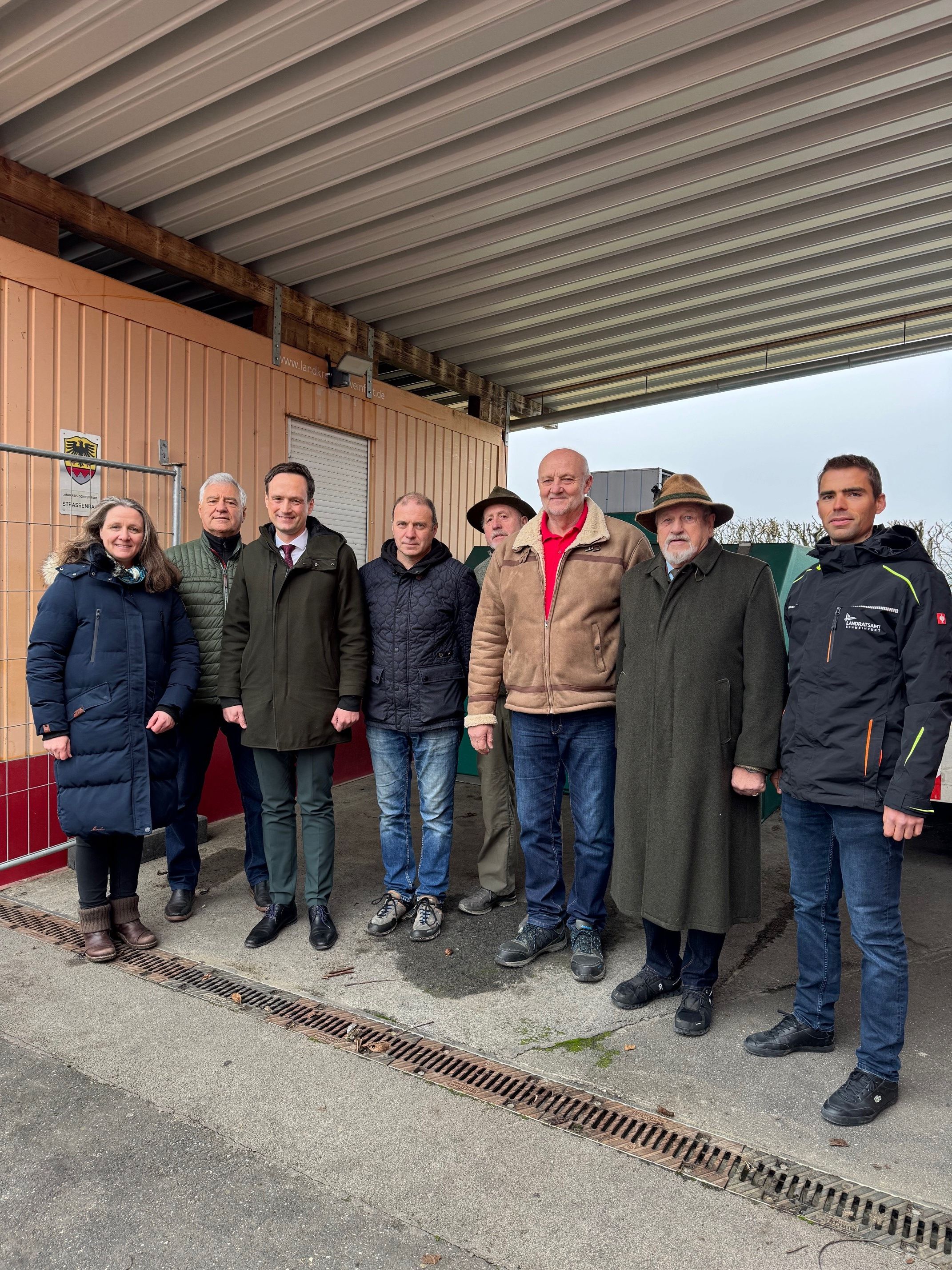 Bild: In Niederwerrn wurde die Konfiskatsammelstelle für die Jägerschaft freigegeben, das Bild zeigt (von links): Dr. Anja Heinelt (Veterinäramt), Wolfgang Schmitt (Jagdberater), Landrat Florian Töpper mit Jochen Bienmüller, Helmut Brand, Günter Winkler und Wolfgang Senft vom Jagdschutzverein Schweinfurt sowie Philipp Keller (Umweltamt).