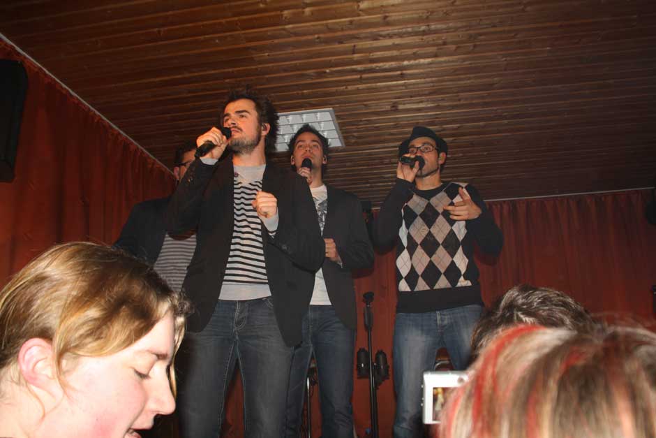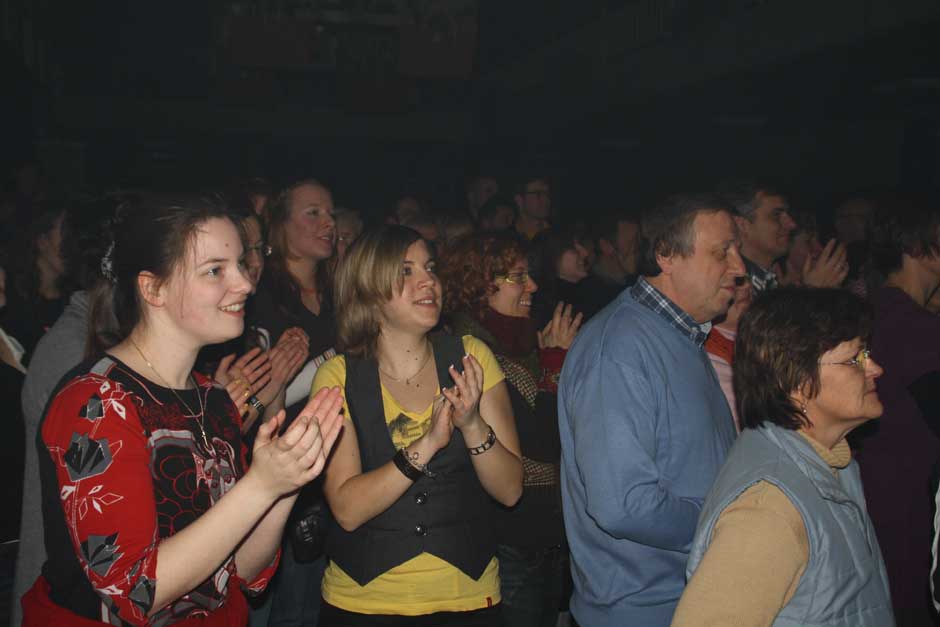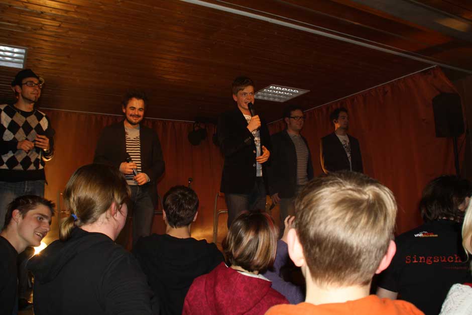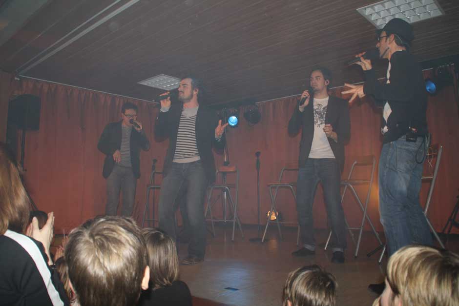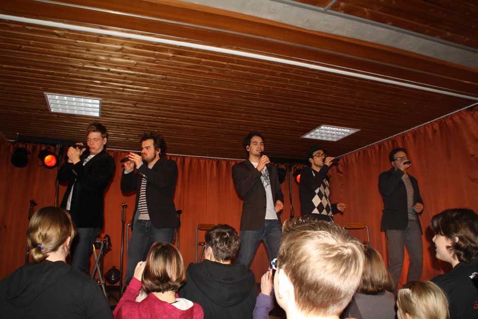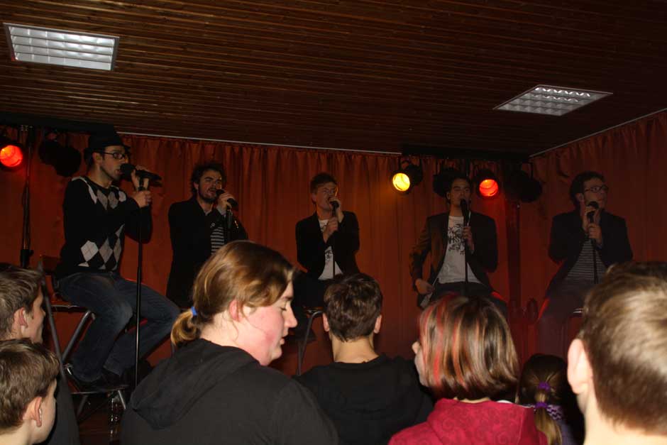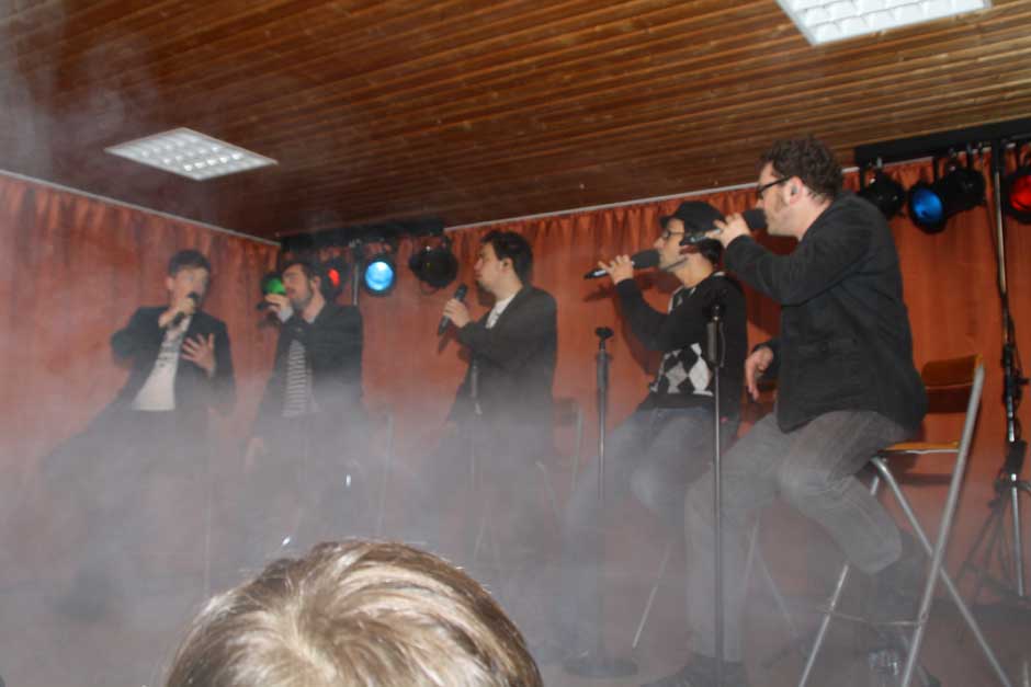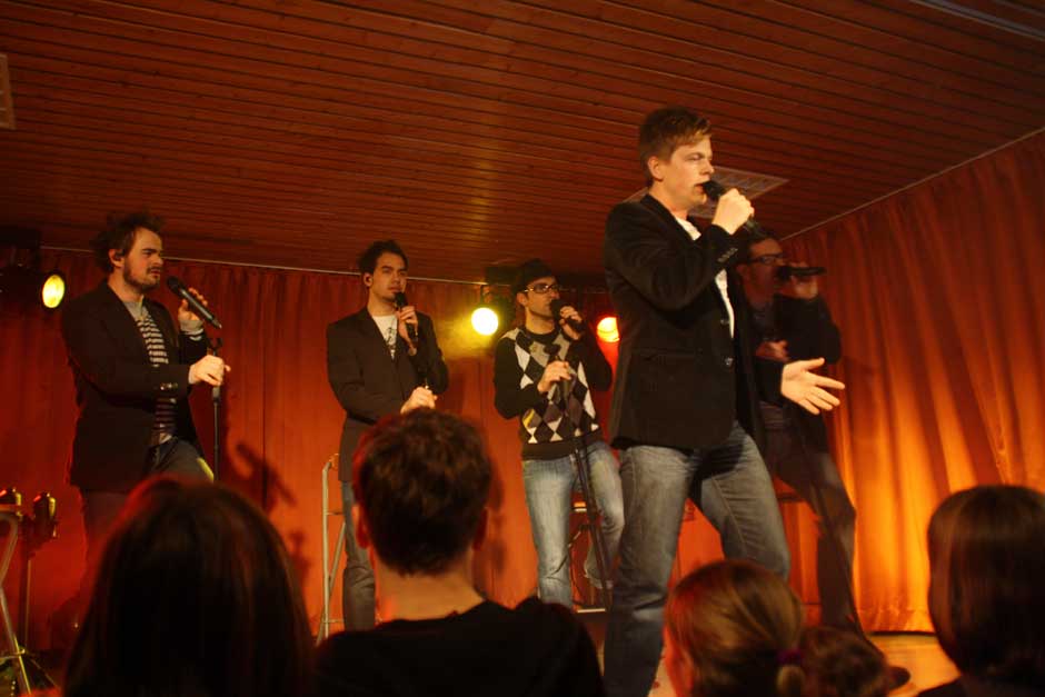 Ihr Publikum haben die Musiker fest im Griff. Das lässt sich nicht zweimal zum Mitsingen und Mitklatschen auffordern. Während sie temperamentvoll über die Bühne jagen, beweisen sie aller Welt: „mundgemachte Musik“ ist keinesfalls langweilig, sondern abwechslungsreich und vielseitig. Das Publikum weiß dies zu schätzen, am Bühnenrand steht so manche junge Dame mit strahlenden Augen und auch die nicht mehr ganz so jungen Besucher sind sich einig: „Schö war‘s“.